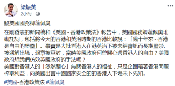 此前,全国政协副主席、香港特区前行政长官梁振英发文驳斥称,美国只是企图借着香港问题榨取利益。不少国内外学者表示,美国若真的对香港“下手”,会危及美国自身的经济和金融利益,得不偿失。